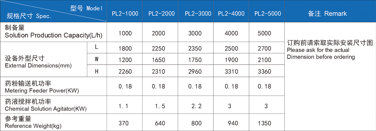পিএল 2 দ্বি-বাক্স সিরিজ স্বয়ংক্রিয় পাউডার প্রস্তুতি এবং ডোজিং ডিভাইস একটি উপরের এবং নিম্ন কাঠামো গ্রহণ করে, উপরের গহ্বরটি দ্রবীভূত এবং পরিপক্ক হয় এবং নিম্ন গহ্বরটি সংরক্ষণ করা হয়। পাউডার সর্পিল ডোজিং ডিভাইসের আউটলেটটি একটি শাটার ডিজাইন এবং সর্পিল টিউবের বাইরে একটি হিটার রয়েছে।